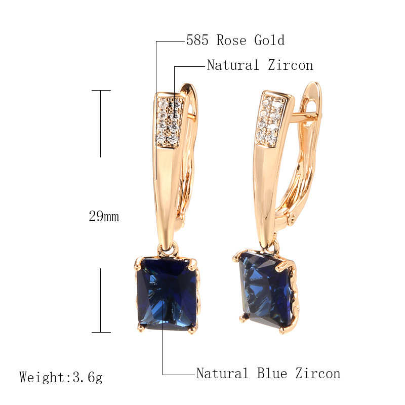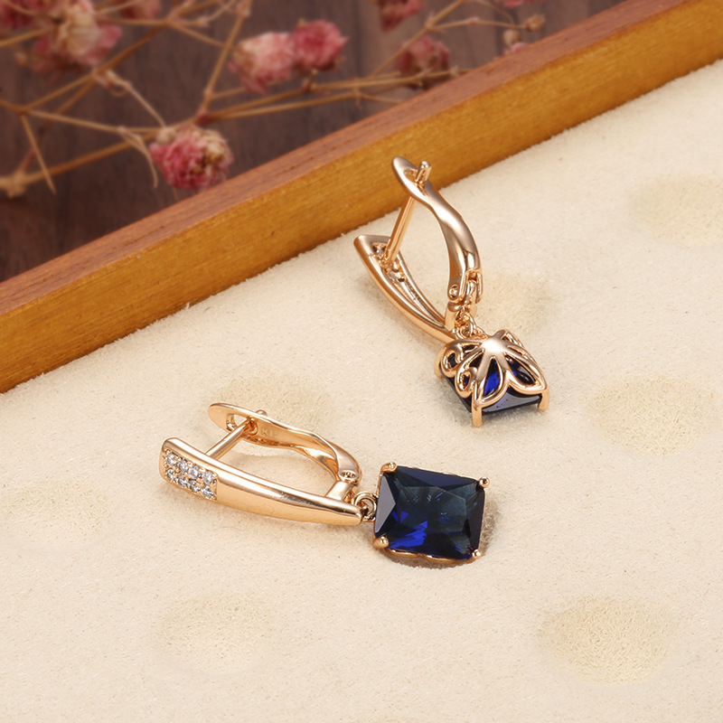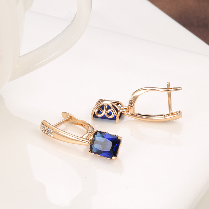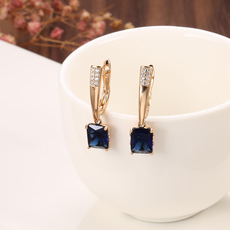 South Korea Fashion Wide Blue Zircon Women's Cold Style Square Diamond Earrings